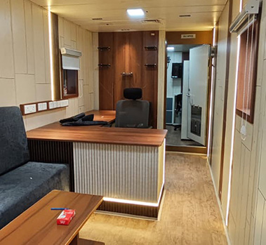 The scope of work includes the complete supply, fabrication, installation, testing, and commissioning of interior fit-out works for the OIC Cabin and Dock Master area. The project covers wall paneling works using marine-grade plywood mounted on treated framework with laminate or veneer finish, fabrication of a central table using marine plywood with laminated surface and cable management provisions, installation of heavy-duty commercial vinyl or marine-grade flooring with proper surface preparation and skirting, and installation of window blinds and sofa seating with durable materials suitable for operational environments. The electrical works include FRLS copper wiring through PVC conduits, installation of modular switches, and proper earthing as per IS standards to ensure safety and reliability. The scope also includes installation and commissioning of the Public Address system consisting of amplifier, speakers, and microphones with proper mounting and sound calibration. All materials, workmanship, and installations shall comply with relevant IS standards, NBC 2016 guidelines, and applicable marine operational requirements. Upon completion, the contractor shall submit testing reports, as-built drawings, and warranty documentation for final approval and handover.